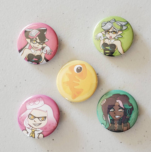 Splatoon Squid Sisters | Splatoon 2 Off the Hook | Salmon Run Golden Power Egg | Pinback Buttons